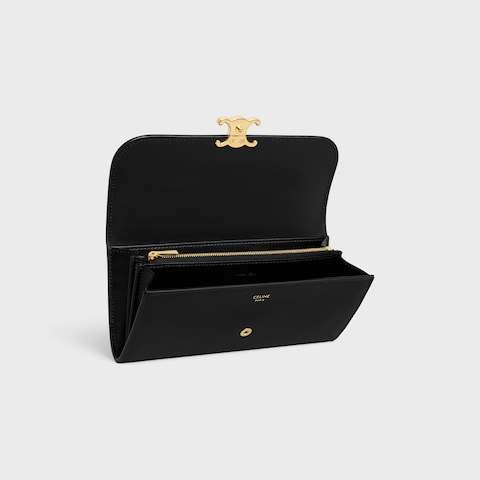Celine Large Wallet Triomphe Black Shiny Calfskin