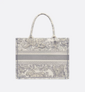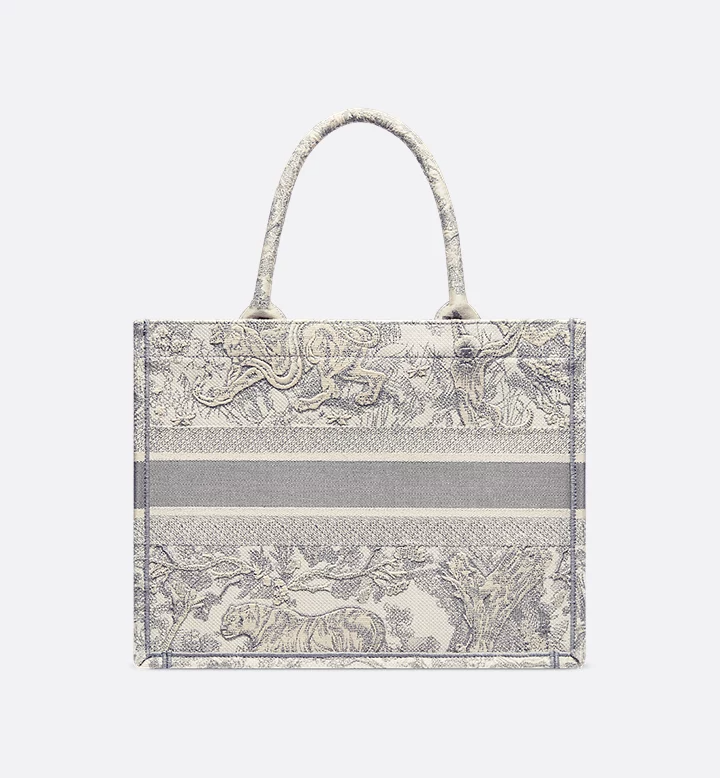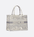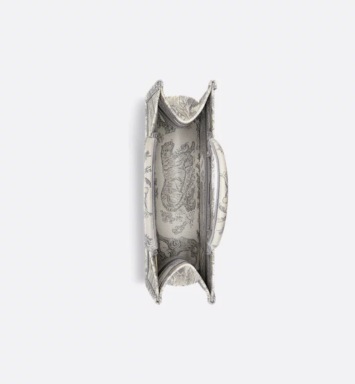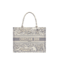Dior Ecru and Gray Toile de Jouy Embroidery Medium Tote Bag