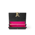 Crafted in supple Taurillon leather with a leather-covered LV signature, this elegant wallet is inspired by the emblematic Capucines line. Sensorial yet functional, it is still large enough to fit all your daily essentials.