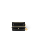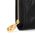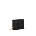 The Lou Coussin wallet comes in soft lambskin, which is embossed with Louis Vuitton's iconic Monogram pattern to create a puffy effect. This small, square wallet is notable for its space-efficient design. It opens to reveal a practical interior with six card slots and a bill compartment, as well as a zipped coin pocket on the side.