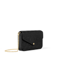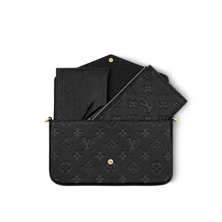 The Pochette Félicie is crafted from Monogram Empreinte leather, embossed with Louis Vuitton's signature Monogram pattern. Designed to adapt to modern lifestyles, this envelope-style pouch contains a spacious compartment with two removable pockets: one zipped, one with card slots. It can also be carried in different ways thanks to a removable chain.