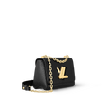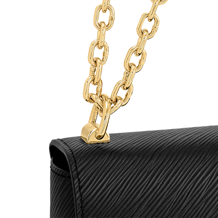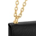 This Twist PM chain bag in grained Epi leather is accented with the now-iconic LV Twist lock, a sculptural signature in gleaming gold metal. Compact but surprisingly roomy thanks to the cleverly designed “wave” base, this beautifully crafted piece is a fashionable day-to-evening companion. The sliding chain strap can be doubled for shoulder carry or lengthened for cross-body wear. A New Classic of the House, the Twist bag was introduced at the 2015 Cruise show.