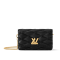 Introducing the new Wallet On Chain GO-14, designed as the perfect day-to-evening handbag. It is crafted from precious quilted lambskin leather and is elevated with signature details including an LV lock and an interlaced round sliding chain that offers multiple styling options. Remove the gold-tone enchappés to turn it into a chic pochette.